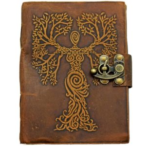 Goddess and Tree Leather Journal Embossed with Lock 5×7