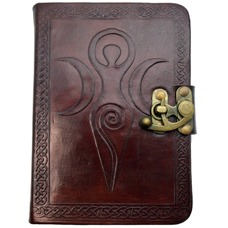 These exquisite 5×7″ journals are made in India from genuine leather with a detailed embossed design. They contain 120 pages of 100% handmade linen parchment paper and a metal lock closure. They make an excellent Book of Shadows, for sketching, note taking, saving recipes, spells or prayers.