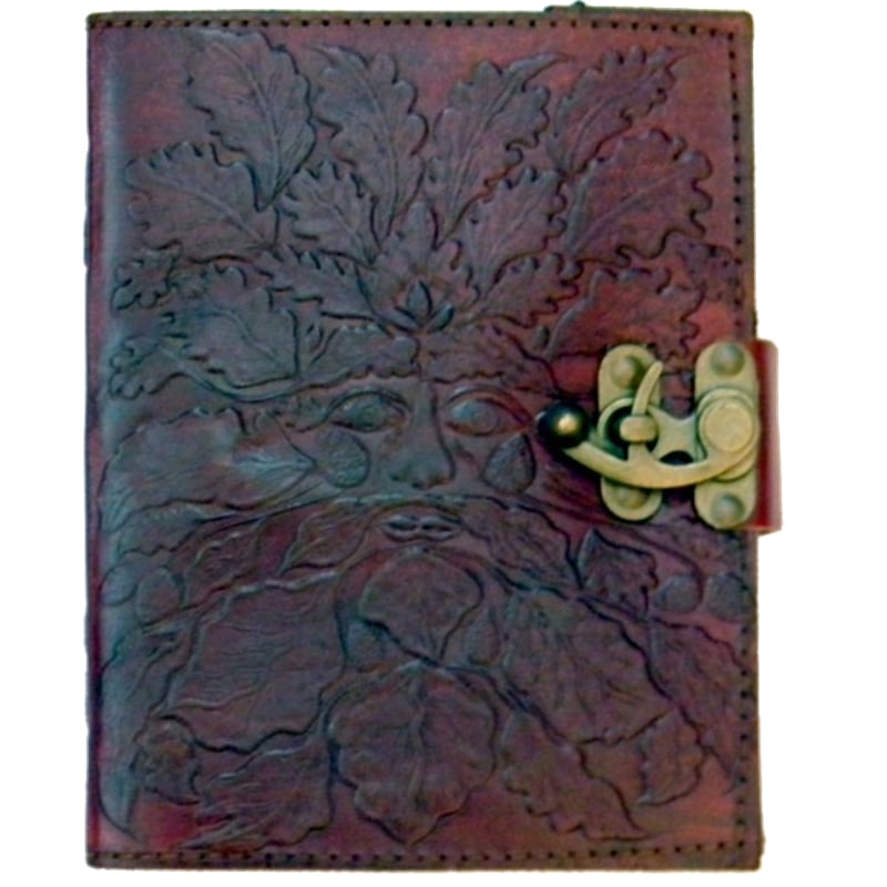 These exquisite 5×7″ journals are made in India from genuine leather with a detailed embossed design. They contain 120 pages of 100% handmade linen parchment paper and a metal lock closure. They make an excellent Book of Shadows, for sketching, note taking, saving recipes, spells or prayers.