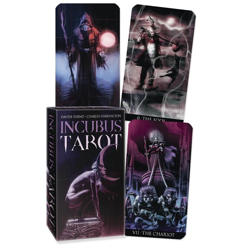 Hiding down in the obscure depths of our consciousness is a world that only reveals itself during sleep, when the mind has fallen into the hands of the subconscious. As your inhibitions fade, the dark lords of Incubus Tarot appear. This nightmare-themed deck by Davide Furnò opens the gate to a dark and barren realm, inhabited by surreal creatures that evoke your innermost fears and challenge you to overcome them. With Charles Harrington’s book to guide you, your journey through danger will lead to remarkable insight and confidence.