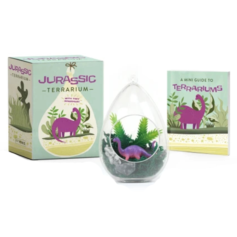 A quirky, refreshing take on a popular backlist mini, JURASSIC TERRARIUM brings some green fun to your home or workplace with your own little miniature dinosaur habitat that you can create and display.
