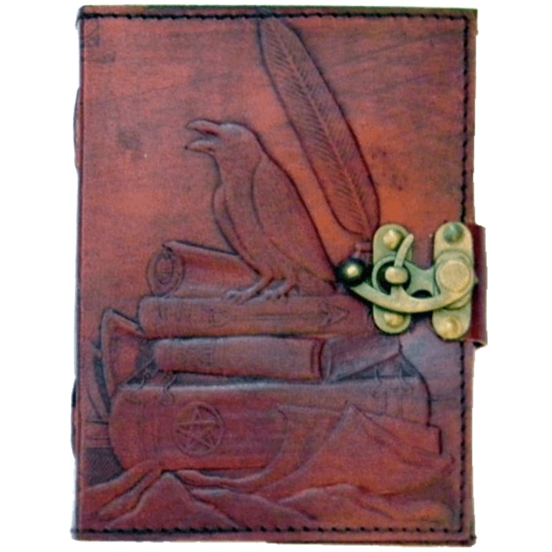 Raven on books embossed, brown