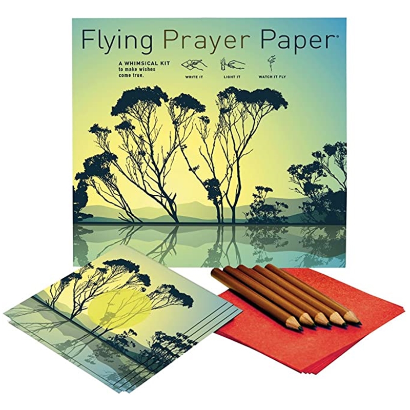 A Wishing Activity Kit to Celebrate and Inspire! IT FLIES! Think of a special wish – your dream, your deepest desire, your ambitions, concerns or burdens – and write it on the Flying Wish Paper. Shape your paper into a tube and place it on the Wish Platform Card. Light the top edge of the tube and watch it burn down in a small, beautiful flame. At the last moment your wish magically lifts off the platform and rises to the heavens!