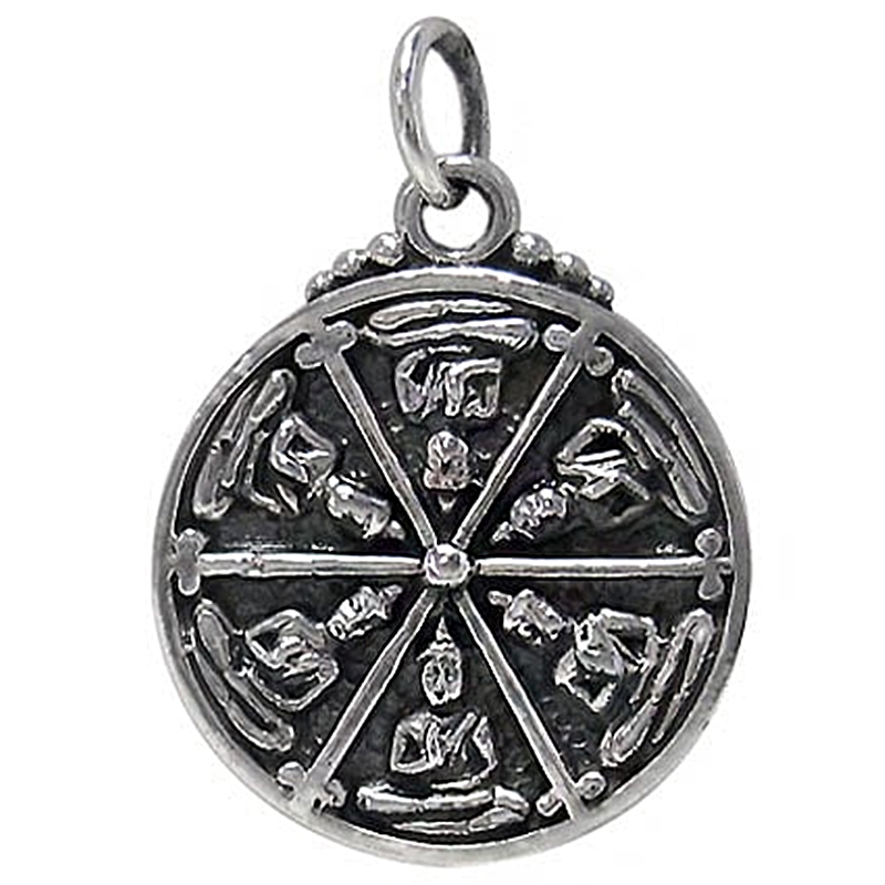 Sterling silver Buddha Tibetan Wheel of Life pendant, 21mm diameter