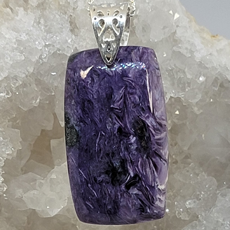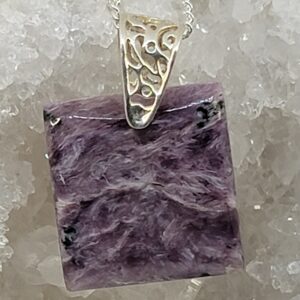 Sterling Silver Charoite Pendant Cabochon Rectangle